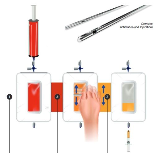 Lipo-Med is equipped with a semipermeable membrane that separates adipose tissue from waste elements with the help of a continuous irrigation.