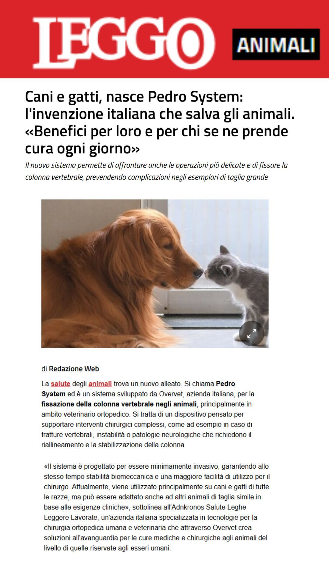 Adnkronos Salute for the attention they have dedicated to our Pedro System – a revolutionary solution that is bringing real innovation to veterinary surgery, helping to improve treatments and the well-being of our four-legged friends.